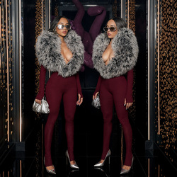 Женский комбинезон с меховым воротником и V-образным вырезом